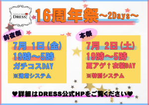 【7月はDRESS16周年祭】