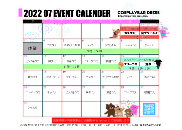 ・2日(土)16周年本祭➡夏アゲ衣装