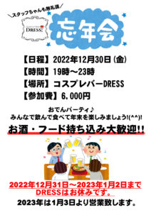 DRESSのクリスマスパーティー開催が決定致しました✨