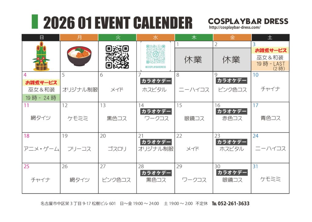 いつもコスプレバーDRESSをご利用いただき、誠にありがとうございます。